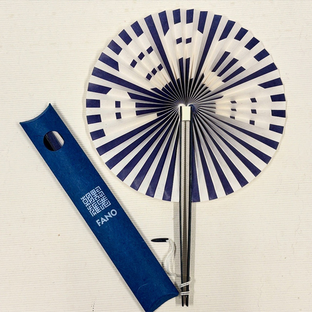扇面デザインはそのままに、ヒノキ間伐材に藍染加工を施し、さらにパッケージには1300年の歴史を誇る徳島の阿波和紙を採用。素材・技術・デザインが融合した特別仕様となりました。
