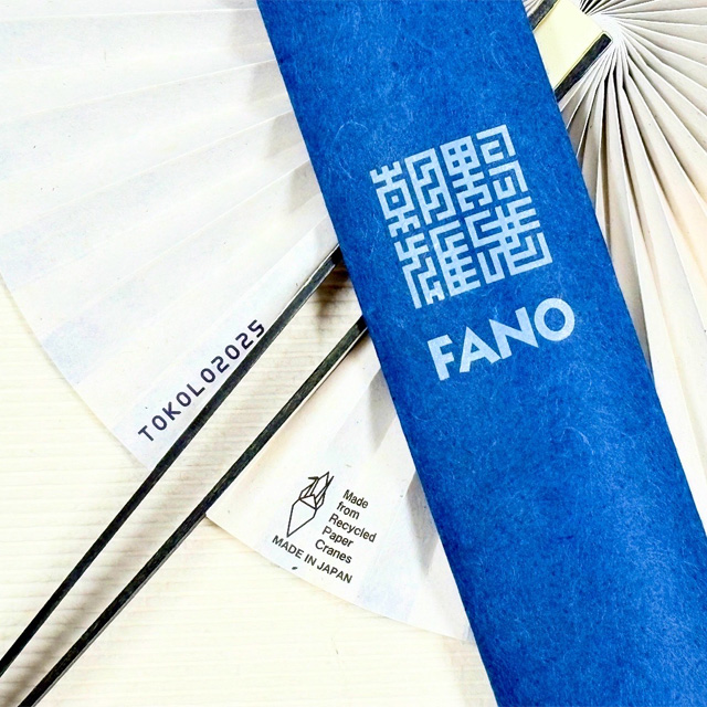 「個」は一つひとつの要素やパーツ、「群」はそれらが集まってできる集合体、「律」はそれらを組み立てるためのルールや法則を意味します。この3つの要素をうまく組み合わせることで、多様で美しい模様やデザインが生まれるという考え方です。さらにこの考え方には、「多様性を認め合い、つながりを生み出す」というメッセージが込められており、それを誰にでも伝わる言葉「PEACE(平和)」で表現しています。また、FANO独自の360度に広がる蛇腹(じゃばら)構造と、日本の伝統色である藍と白の交互配色によって、見る角度によってPEACEの文字が浮かび上がったり隠れたりするなど、さまざまな表情を見せてくれます。